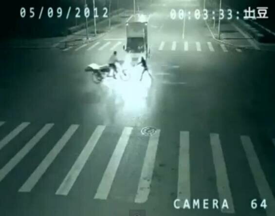 La grabación que podrán ver a continuación fue tomada por la noche, por una cámara de seguridad en las calles de China.